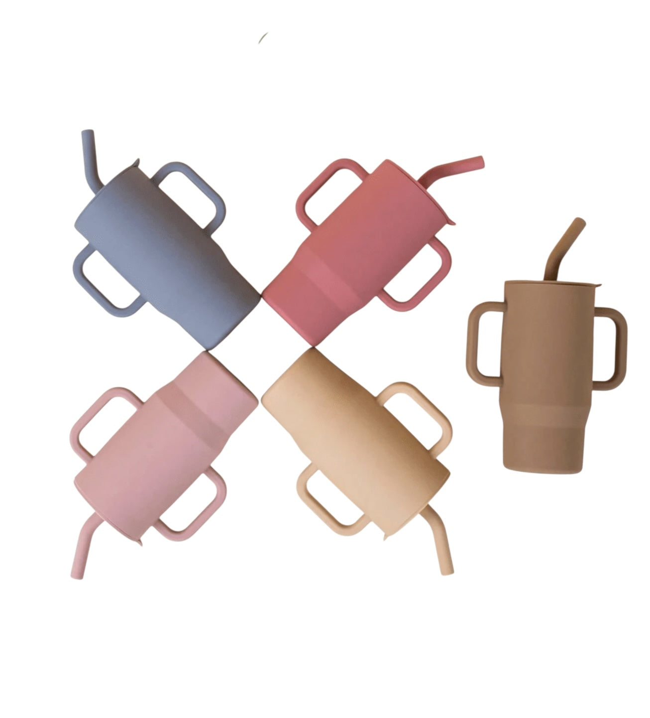 Taza de entrenamiento de bebé de silicona de 7oz/210ml con asas cómodas, pajita y tapa - multiusos para practicar habilidades de beber temprano, adecuado para niños y niñas de 6 meses a 6 años