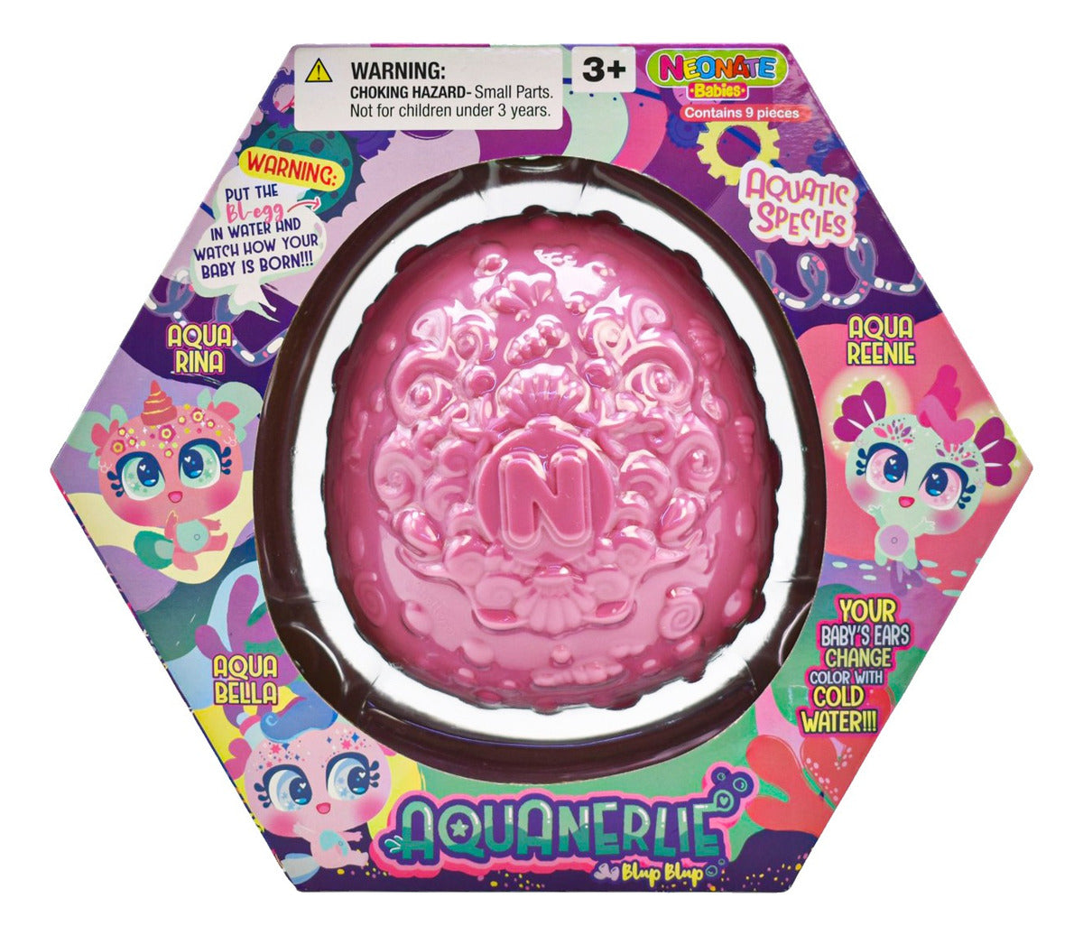 El Aqua Nerlie es un adorable huevo sorpresa que oculta en su interior un bebé acuático de la colección Aquatic Species. Los niños pueden vivir la experiencia de “dar vida” a su pequeño Nerlie al sumergir el huevo en agua fría y descubrir qué personaje les tocó.