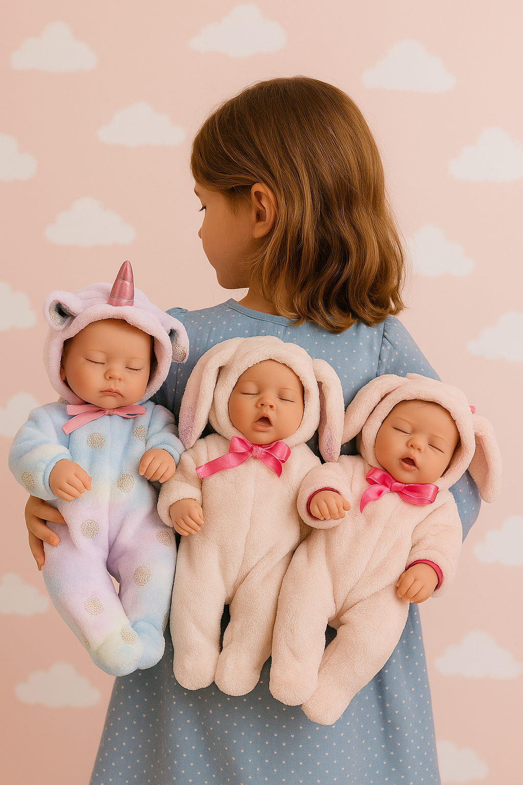 Muñecas Newborn con cobija y diadema ch, mediana y grande.
