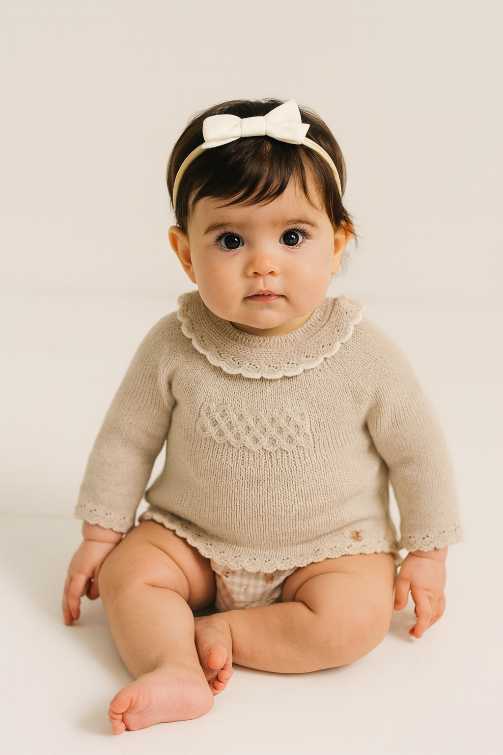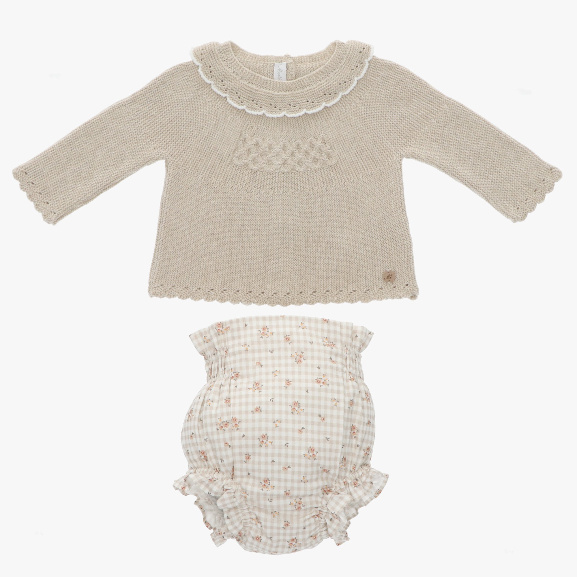 Ranita Manga Larga De Punto Con Tela Beige NINA & BO